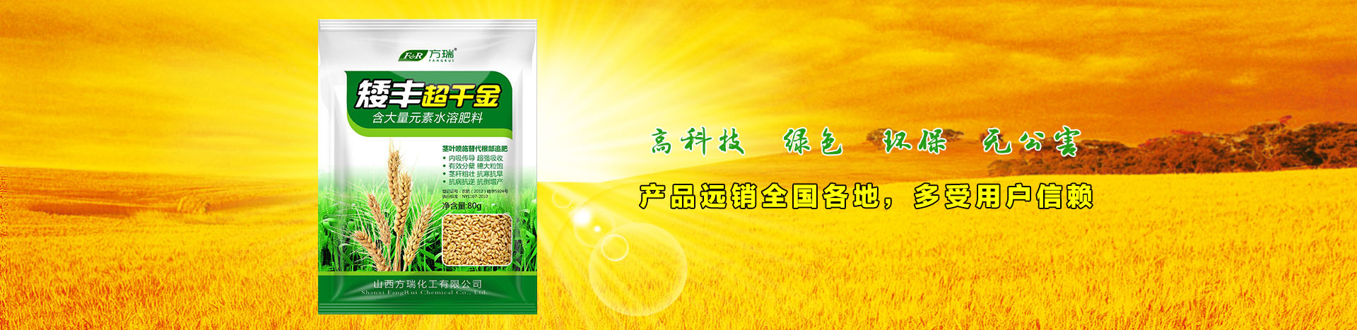 山西方瑞化工有限公司是專業(yè)的集研發(fā)、生產(chǎn)、銷售為一體的新型、******、綠色、科技、環(huán)保型肥料企業(yè)。公司技術(shù)力量雄厚,擁有先進的生產(chǎn)工藝及配套設備,特別在全元素水溶性肥料生產(chǎn)方面取得了輝煌的成就。...>> 詳情